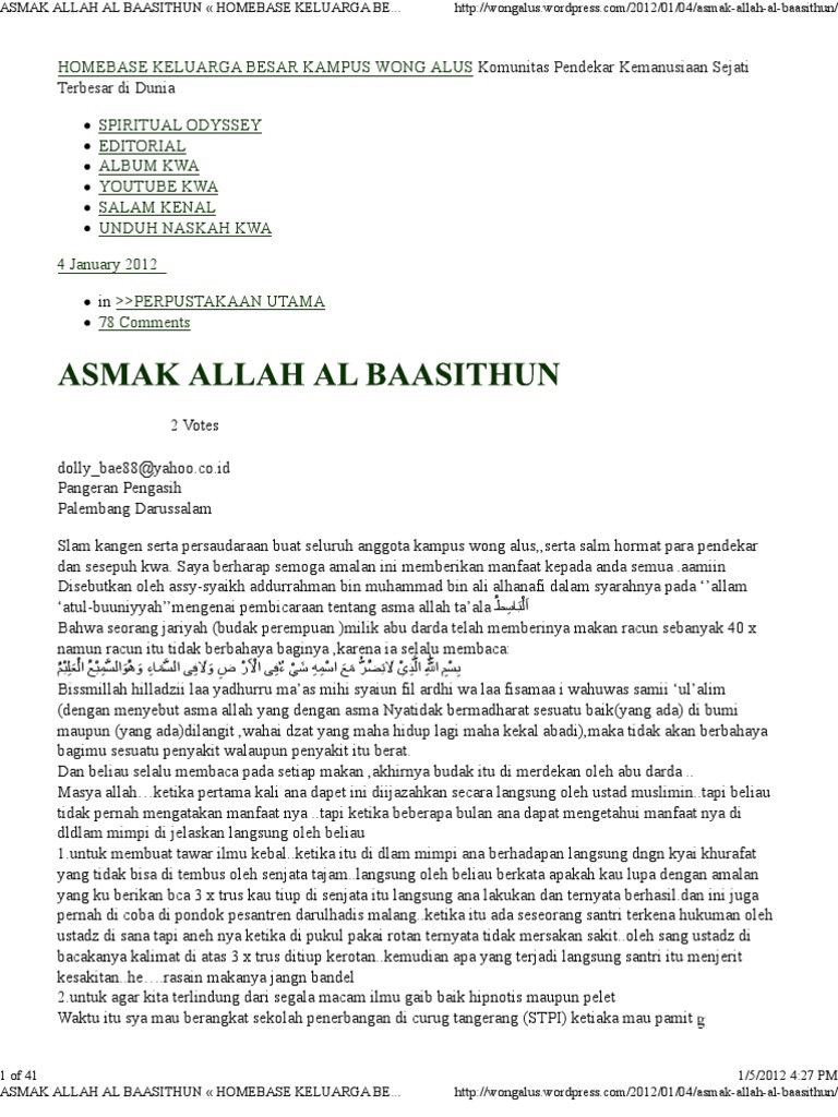 E Book Kwa Kumpulan Asma Jilid I from image.slidesharecdn.com Saya berjanji akan menjaga nama baik blog kampus wong alus dan saya tidak ingin menyalahgunakan isi dari blog kampus wong alus ini. Dec 06, 2016 · ijazah ilmu saborat bhumi tersebut demi meningkatkan ibadah hanya kepada allooh swt secara ikhlas. Oct 15, 2019 · mustika ini sangat lah lanka dan untuk menarik mustika ini di perlukan hati yang bersih mustika ini biasanya di gunakan untuk pelaris toko dan penjaga diri Jun 26, 2019 · amalan ilmu asmak sapu jagad. Oct 10, 2013 · qobiltu ijazatuka hadzal warid walhamdulilahirobil alamin.ki wong alus saya terima ijazahnya ilmu penggerak bumi secara sempurna,tsuma ila hadarati muhamad wildan shohibi hadzihil ijazah alfatihah 15 oktober 2013 Amalan ilmu asmak sapu jagad merupakan keilmuan hikmah yang selalu di amalkan oleh kiai kami maha guru, beliau sudah sangat pandai mendalami tentang keilmuan hikmah ini, termasuk amalan ilmu asmak sapu jagad, ilmu ini bukan ilmu hitam jadi aman bagi siapa saja yang ingin memiliki nya, tidak akan masuk kelembah yang hitam / musrik, untuk itu insya allah dengan. Amin yaa allah yaa robbal 'alamiin, terima kasih banyak dan semoga ki wong alus selalu ada dalam ridho allah swt. Allah , asia , indonesia , islam , muslim , slideshare , standard widget toolkit email this blogthis!